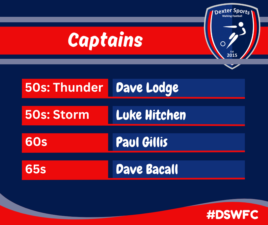 While Luke will be leading Storm out, the new captain for Thunder will be David Lodge. Dave’s a relatively new member of Dexter Sports Walking Football Club, having joined just over a year ago.